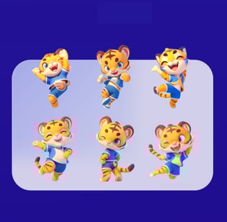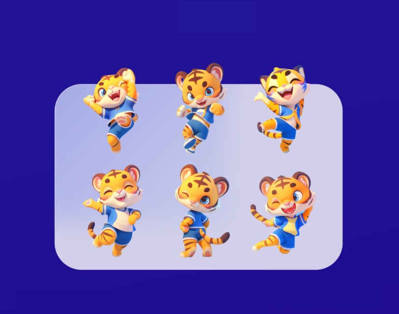 Tiger cartoon characters are usually characterized by bright orange fur and brown stripes, showing its wildness and strength. The design endows it with big, gleaming eyes to enhance its cuteness and affinity. At the same time, adding some humanized expressions and gestures, such as smiling or waving, makes it more friendly and easy for the audience to resonate with their emotions.